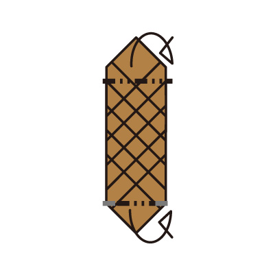 ⑦から交互に段折り(松かさ折り:山折り筋をつまみ上部へひとますの3分の1巾重ねる)