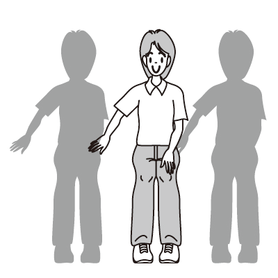両隣と手を繋ぎ、右・左に1回ずつゆれる(4呼間)