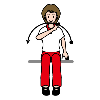 垣根を越えて屋根越えて ④両手で鞠を持って、右斜め上に伸ばす(4呼間) 同様に両手を左斜め上に伸ばす(4呼間)