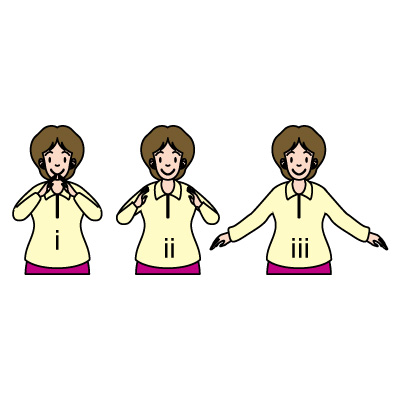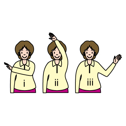 あ~きの ゆ~う ⅰ両手のひら下向きで左下から ⅱ右斜め上に挙げ ⅲ元の左下に戻す
