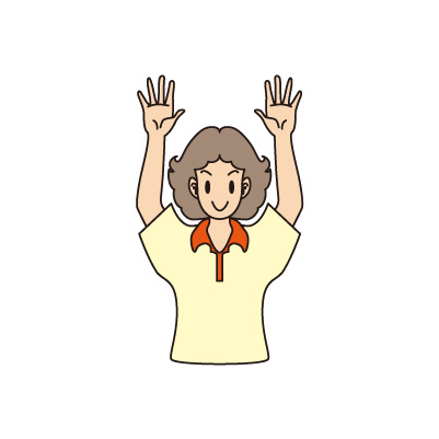 ひとり~ ⑫つないだ両手を上にゆっくり挙げ、ゆっくり下ろす