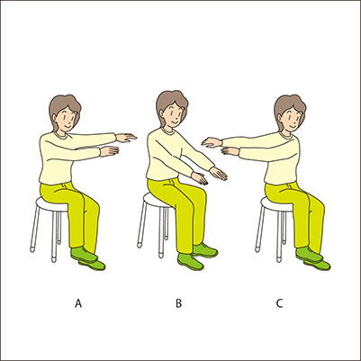 ⑨ゆ~めは(A~B~C) 左手を右から前へ伸ばし左へ