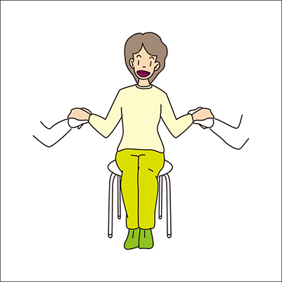 ⑫り~(C)て両手を胸で交差し、 前へ伸ばす 伸ばした手を 左右に開き、 下ろす