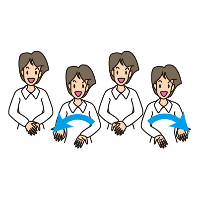 はるかなおぜ ⑯ 両手のひら前向きで両手を顔の前で交差し、外回りで大きな円を描く