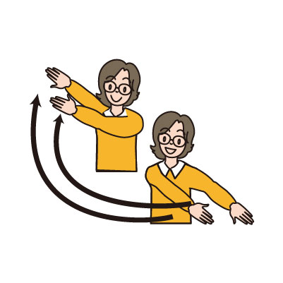 あかるいあかるい ①左手を外回しで上へ、右手も同じく上へ